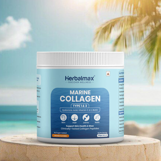 Herbalmax Marine Collagen With Hyaluronic Acid, Vitamin C & E, Biotin - for Youthful Skin (240 gm)