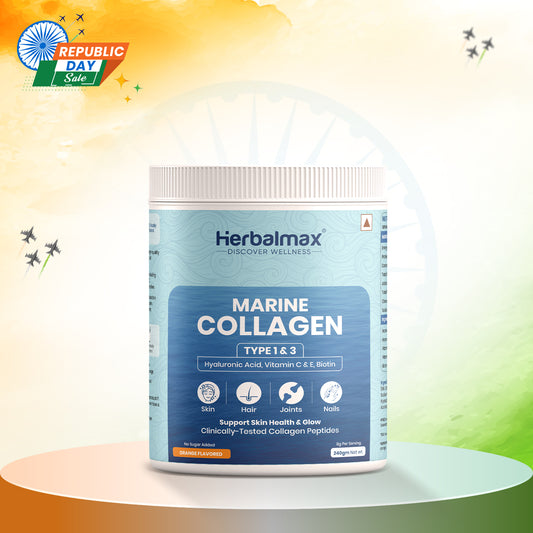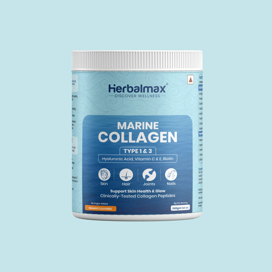 Herbalmax Marine Collagen With Hyaluronic Acid, Vitamin C & E, Biotin - for Youthful Skin (240 gm)