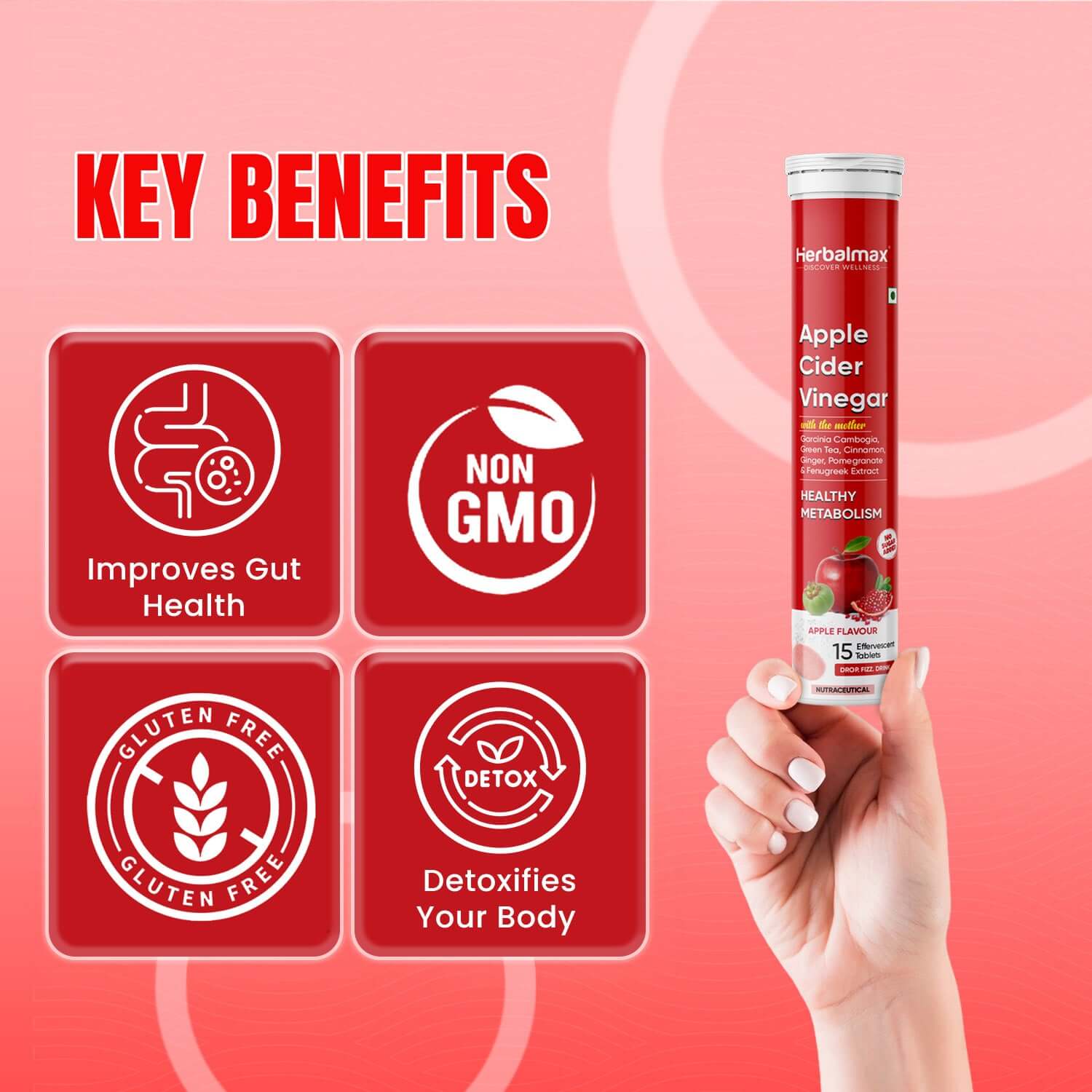 Each tablet contains 1500 mg of apple cider vinegar with 9% acetic acid, known for its role in promoting gut health and weight management. It is combined with garcinia extract, pomegranate extract, green tea extract, cinnamon extract, ginger extract, fenugreek extract, and essential vitamins like Vitamin C, B6, and B12 to enhance its effectiveness.