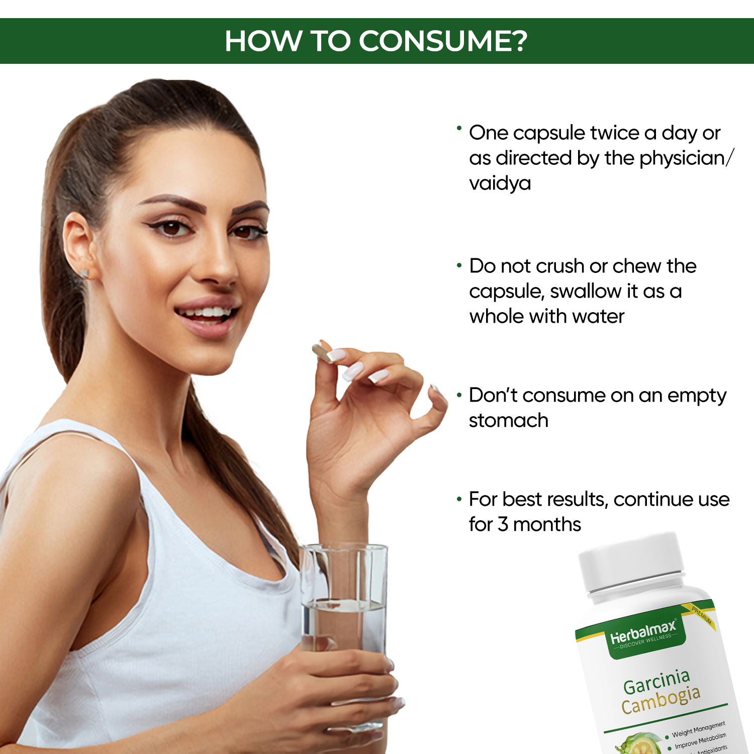 Our Garcinia Cambogia 800 MG is perfect for any consumer looking to maximize the benefits of this natural product. Every capsule is made with natural ingredients and packed with 60% pure Garcinia Cambogia Extract to deliver the best results with just Take one capsule after breakfast and another after dinner with lukewarm water.