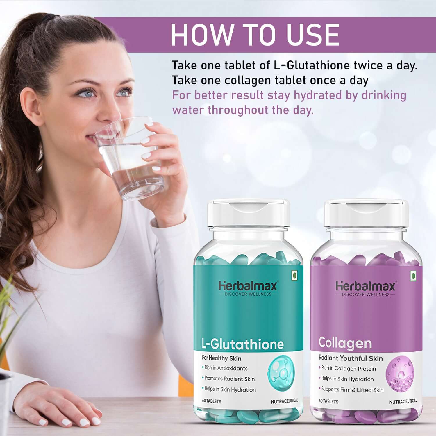 Herbalmax L-Glutathione with Collagen is a supplement designed to promote healthy skin, improve elasticity, and reduce wrinkles. It combines the antioxidant power of glutathione with collagen to support youthful skin and overall well-being. It also boosts immunity and aids in detoxification.