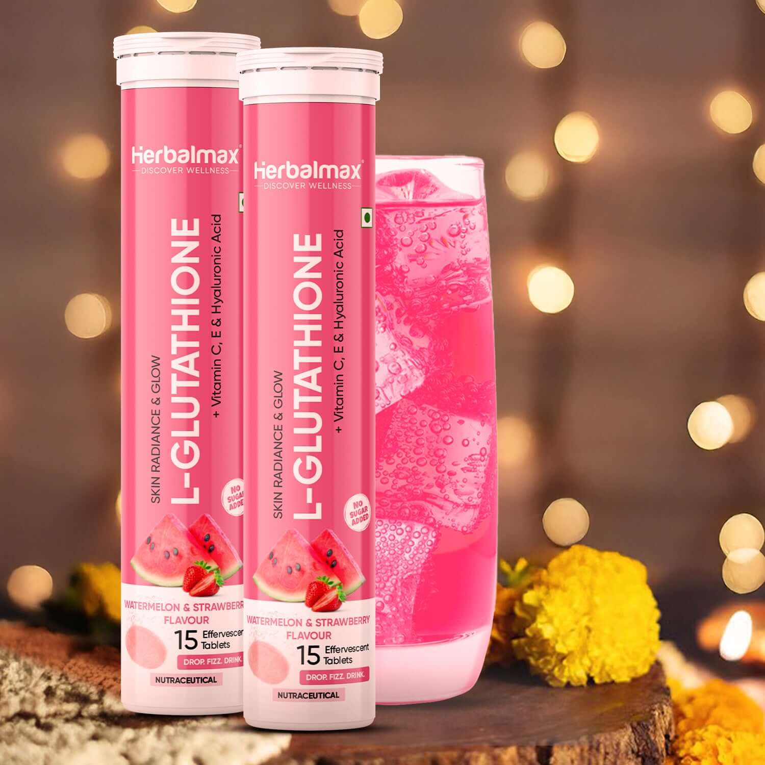 L-Glutathione Effervescent Tablets – 15N Packed with Vitamin C, Hyaluronic Acid & Biotin (Watermelon & Strawberry)