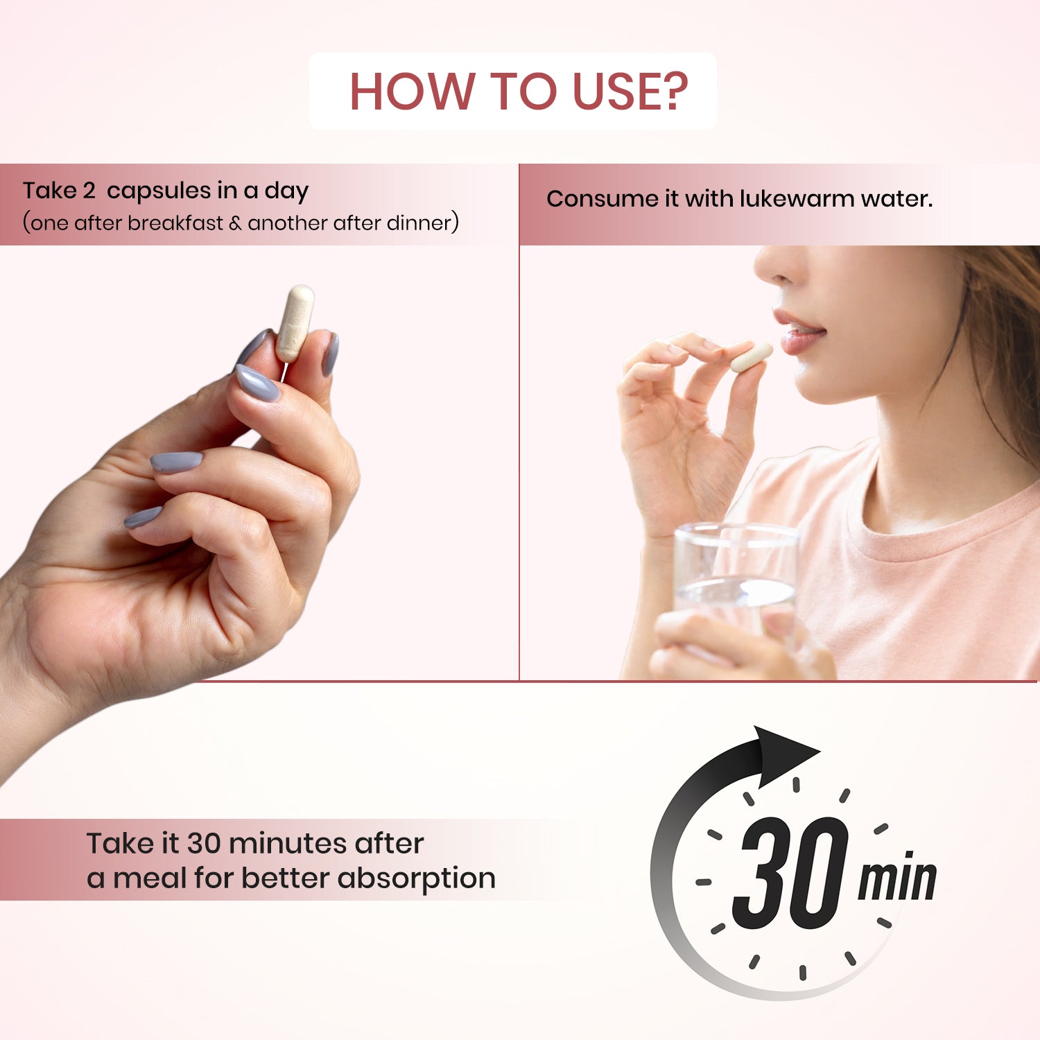 • Take 1 capsule with lukewarm water after a meal.