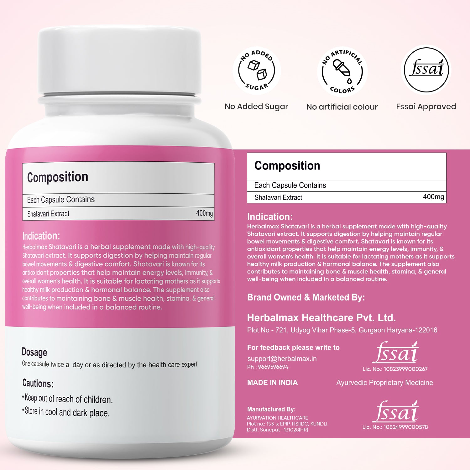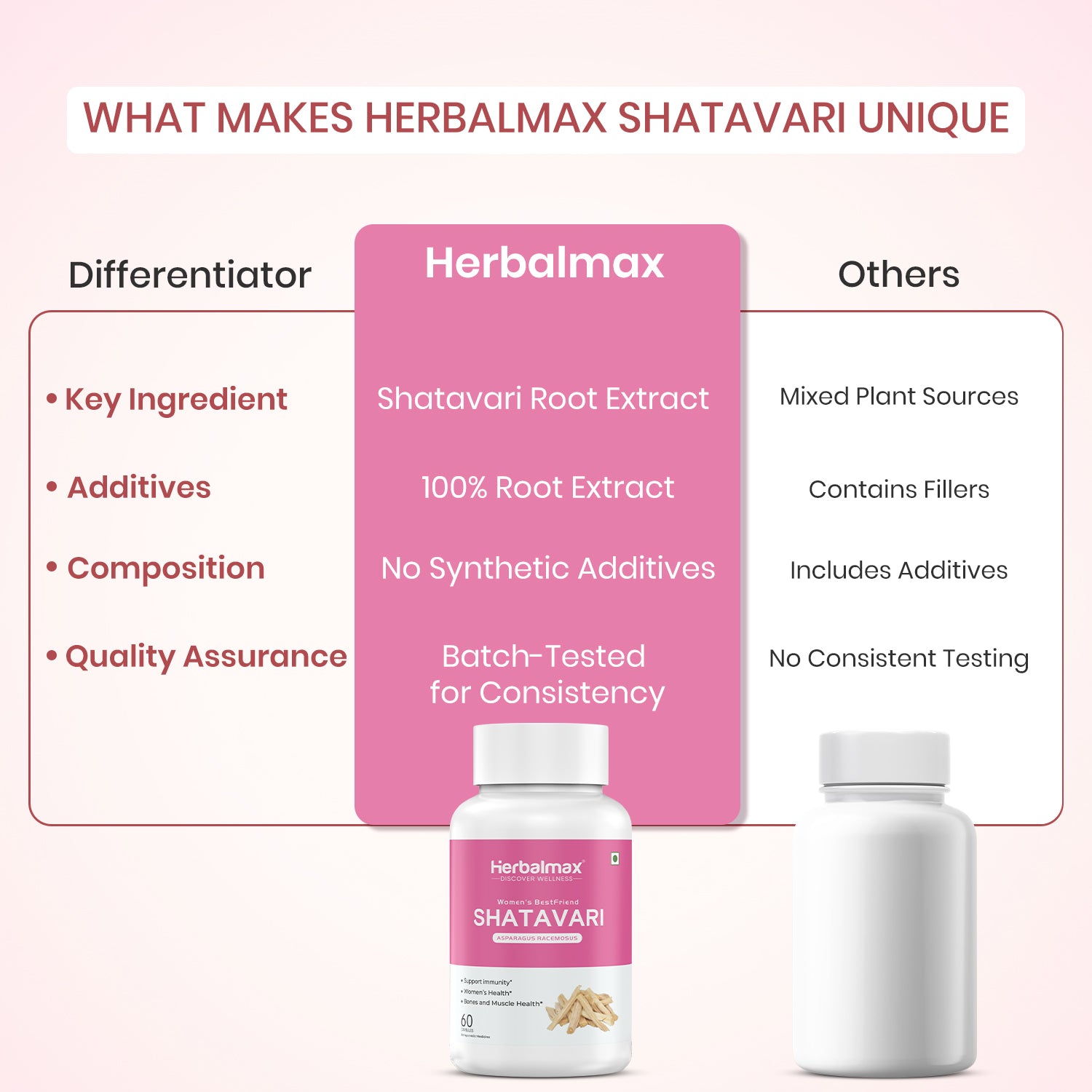 Herbalmax Shatavari capsules contain only pure and high-quality shatavari extracts without any unnecessary additives or artificial ingredients, offering the complete benefit of Shatavari without compromising on quality.